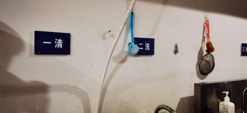 1、洗碗区标识错误,需修改为“一浸(洗)”、“二清”,见下图: